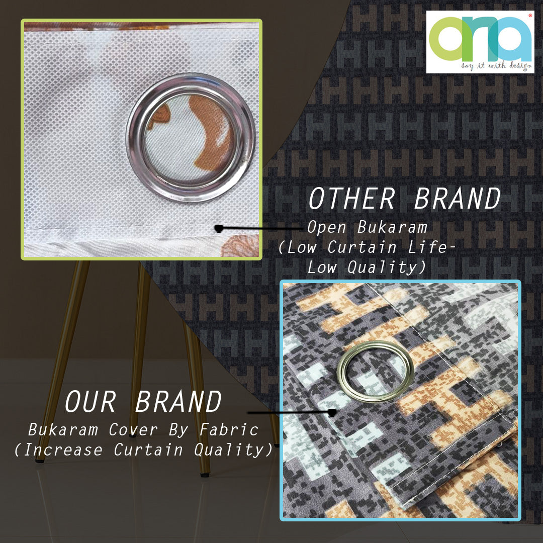 ana Alpha Print Cotton Eyelet Curtains for Window & Door – 5ft, 7ft, 9ft Long Door Curtain for Living Room Bedroom Home Set of 1