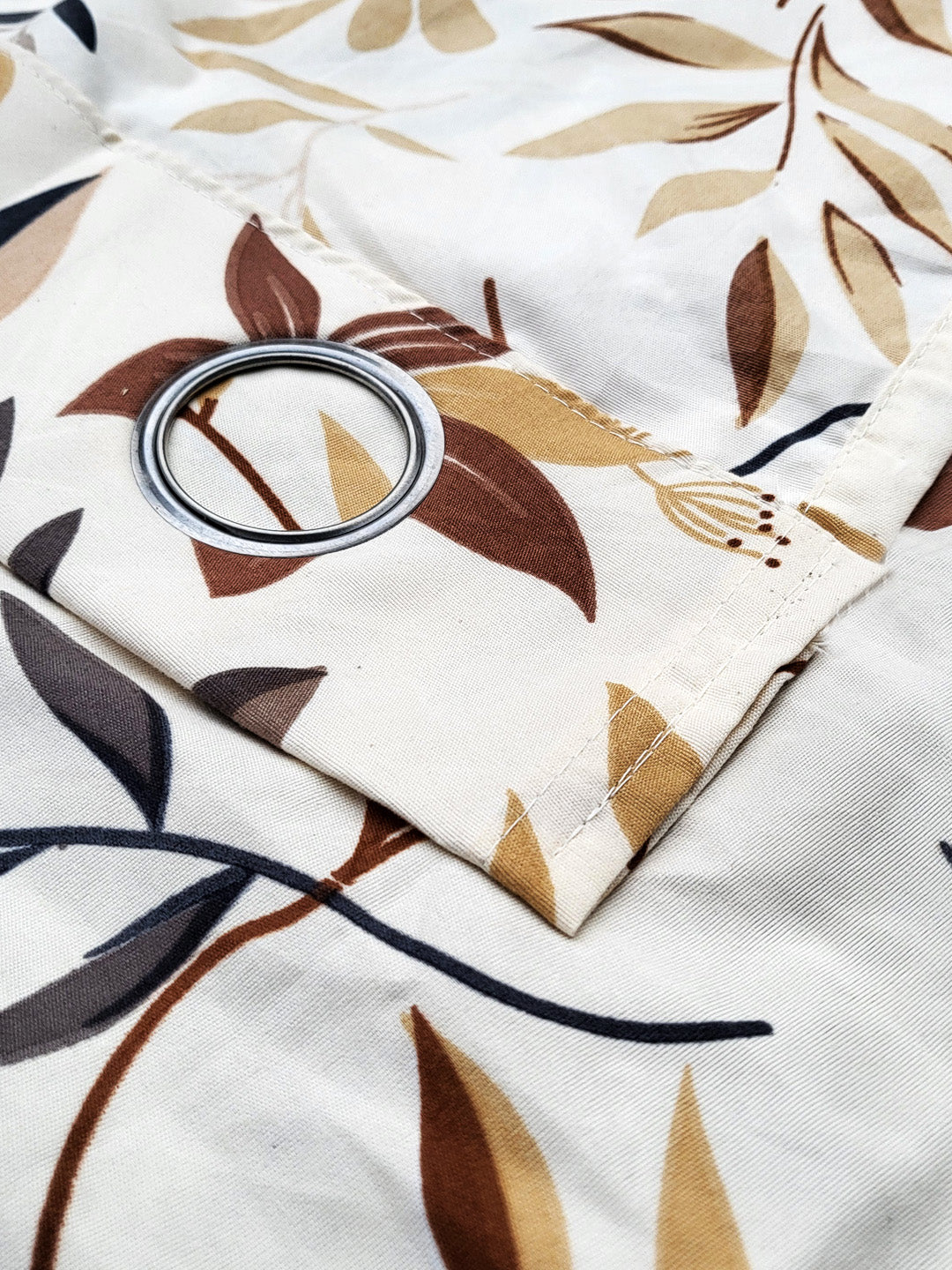 ana Botanical Floral Cotton Eyelet Curtain for Window & Door – 5, 7 & 9 Feet Long Door Curtains for Home Décor Set of 3 Coffee