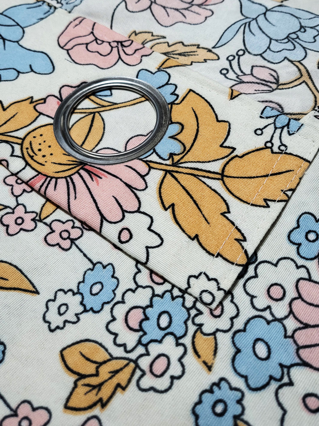 ana Lily Floral Cotton Eyelet Curtains for Window & Door – 5ft, 7ft, 9ft Long Door Curtain for Living Room Bedroom Home Set of 1 Blue